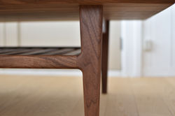 圧迫感のないリビングにするために、天板の曲線や細身の脚など大き さの割にボリュームを抑えたデザインにしています。